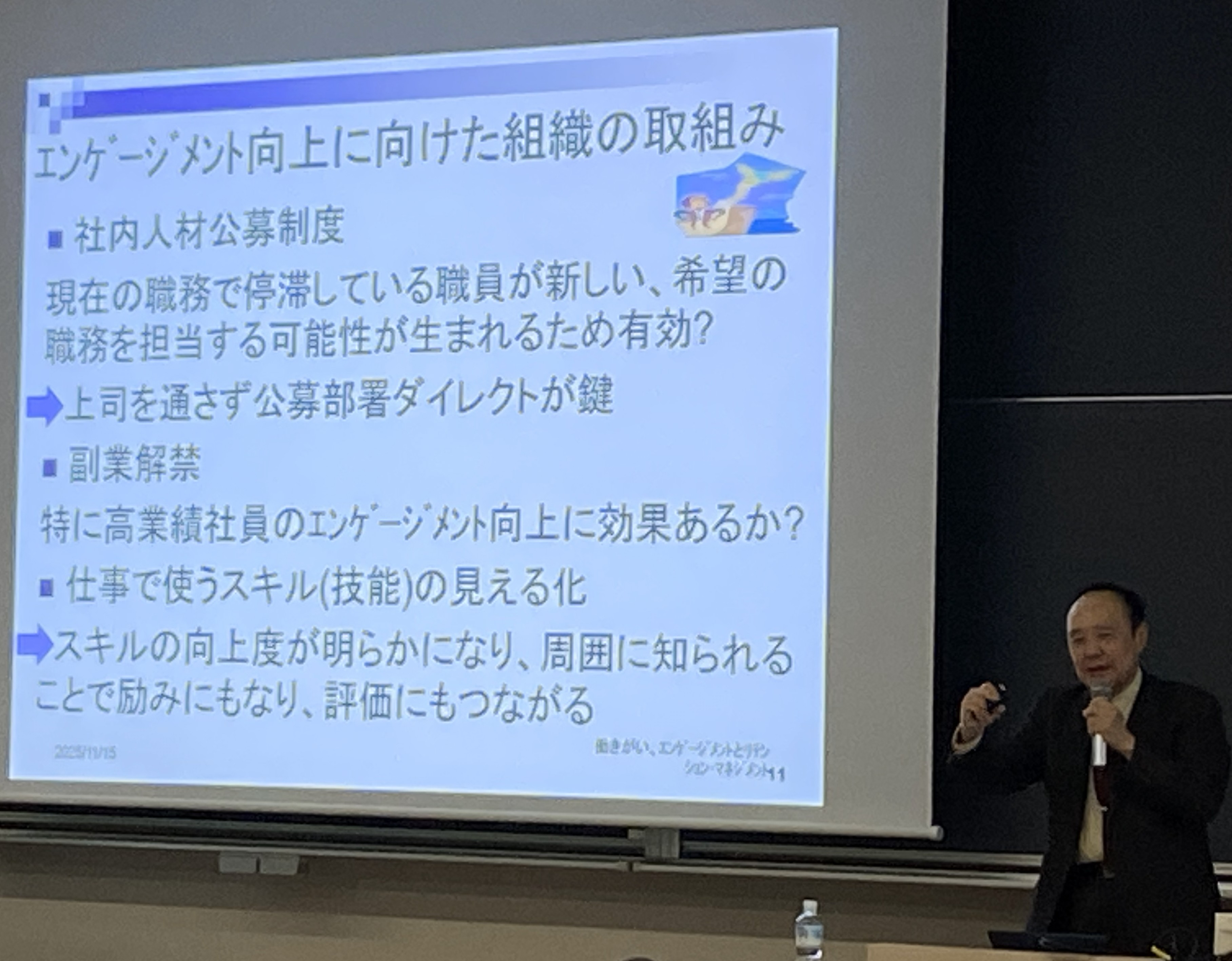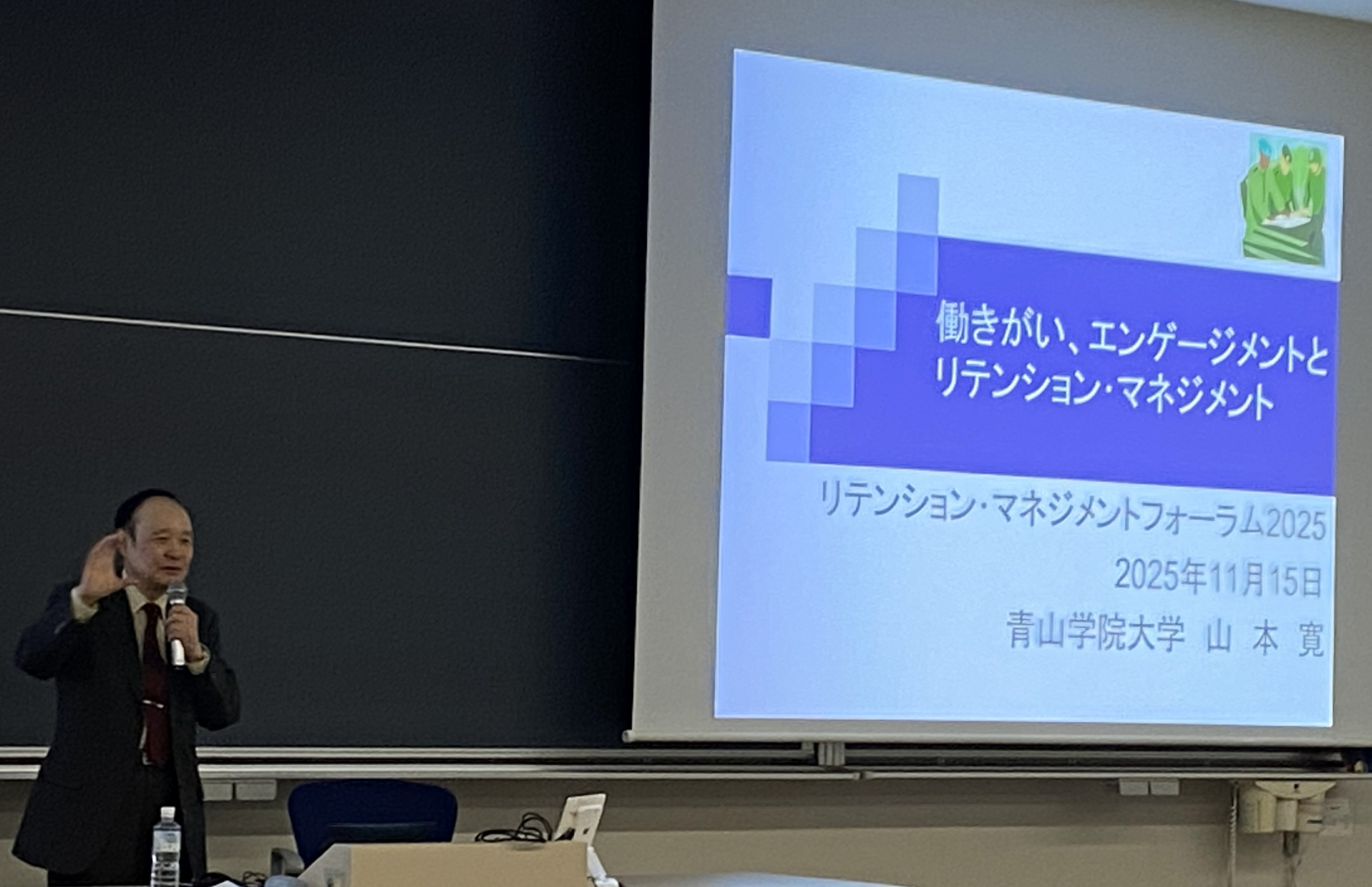 働きがい、エンゲージメントと社員の人材定着(リテンション)のための組織によるマネジメントについての講演に登壇してきました。構造的な少子高齢化が続く中、様々な業種、企業において人材不足が深刻化しています。また、多くの企業で、社員の働きがいや、会社への愛着等を意味するエンゲージメントの低下がいわれ、それらを原因とした退職者増加が問題となっています。本講演では、リテンションのためのマネジメントの新しい傾向や具体的なリテンションのための施策について、企業事例を交えてお話してきました(14:10-14:40 於 青山学院大学青山キャンパス17号館)。